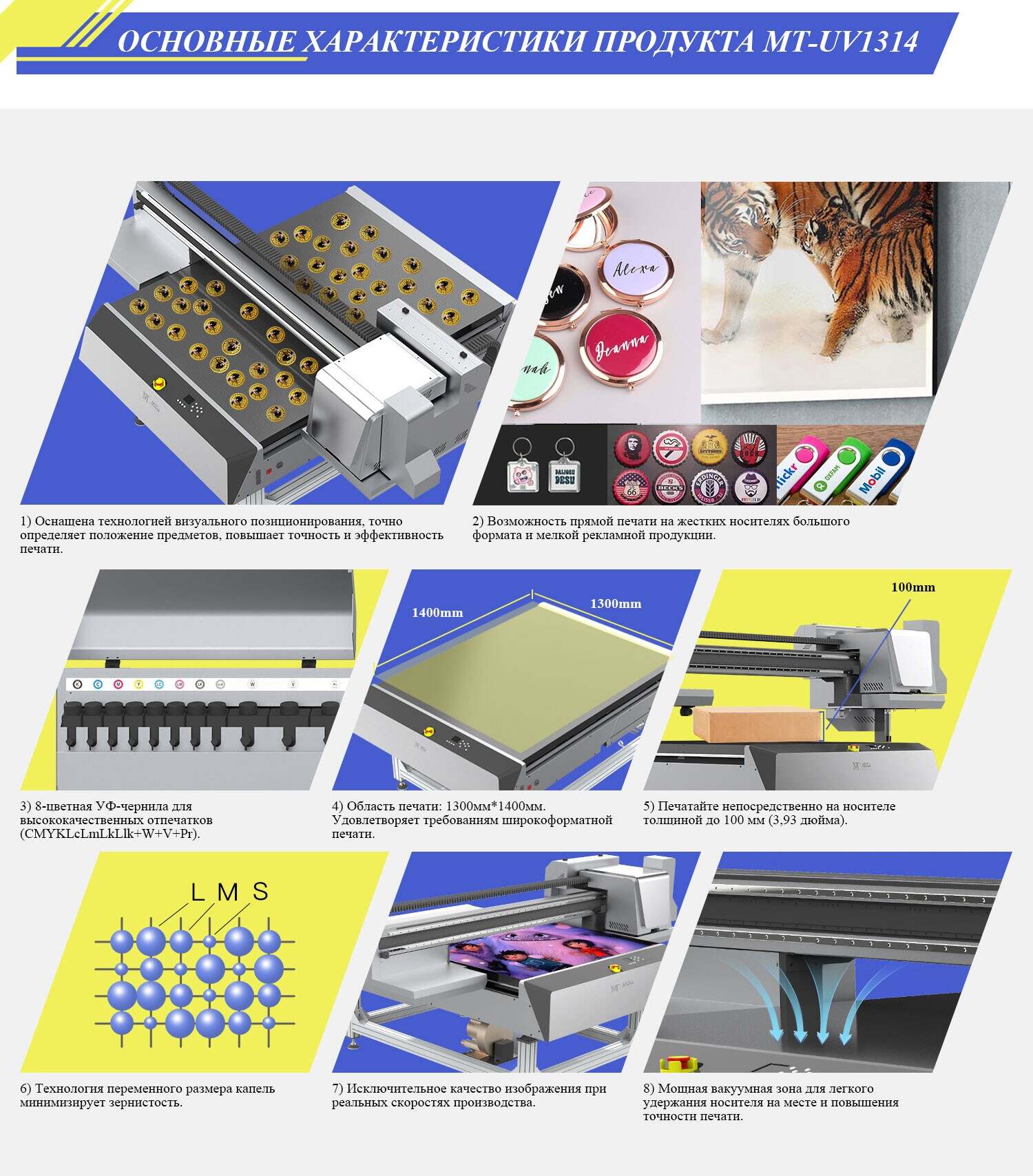 | Тип модели | Планшетный УФ-принтер MT-UV 1315 | ||